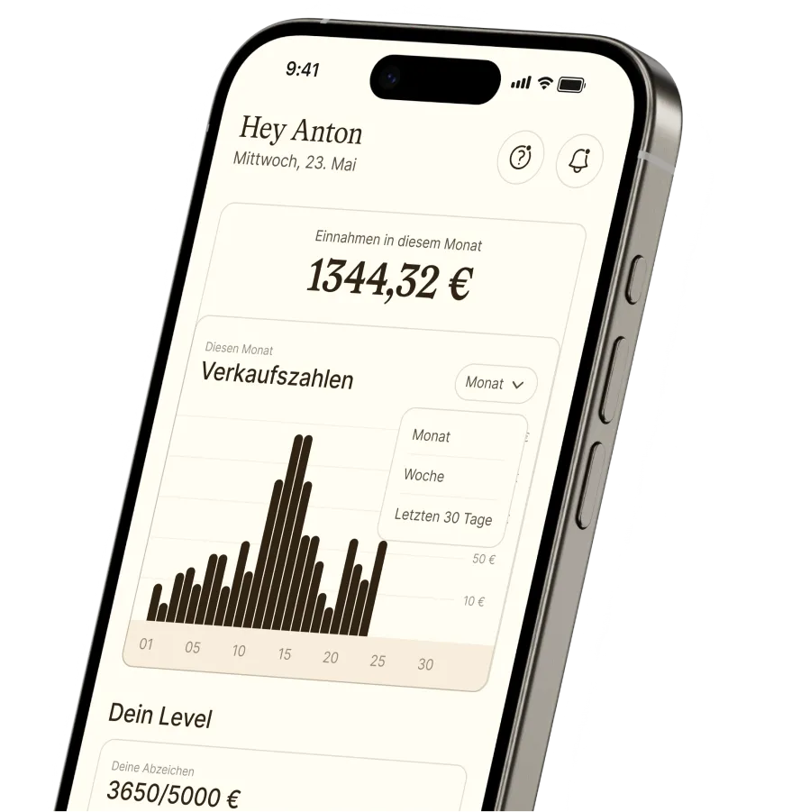 Creator sehen direkt beim Öffnen der App, wie viel sie aktuell verdient haben, welche Produkte gut laufen und wie weit sie vom nächsten Bonus-Level entfernt sind. Das motiviert, gibt Klarheit – und steigert die Performance nachhaltig.